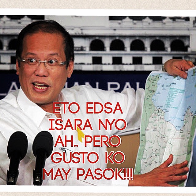“Maganda na siguro ang problema na binabanggit na ma-trapik sa EDSA, tama po yan, dahil marami ang nasa kalsada, buhay na buhay ang ating economiya kaysa naman walang trapik sa EDSAa dahil wala ng makabili ng gasolina na patakbuhin ang kanyang sasakyan (The heavy traffic on EDSA is a better problem, that’s right, because many vehicles are on the road because the economy is doing well. Having no traffic on EDSA, on the other hand, means nobody can buy gasoline for their cars),” the President said.