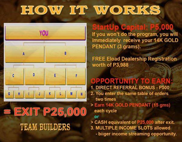 They are gold traders but they also sell prepaid load? Wow! That’s diversification for you! GoldXtreme compensation plan. Image from GoldXtremePH Facebook page